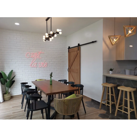 This stylish house has 4 airconditioning bedrooms which can accommodate 10-14 guests. We have spacious living area where lots of TV channel available (football/cartoon/news/etc).