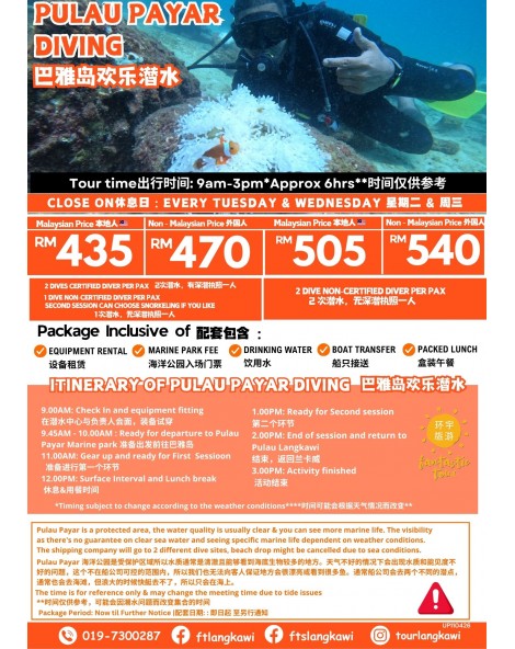 - Non-Certified Diver -RM 390/Per Pax (1x Dive + 1 Snorkelling )